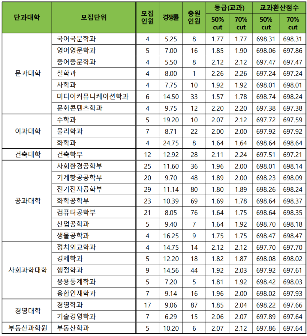 · 상허생명과학 대학 : 1등급 후반대 안정 합격선