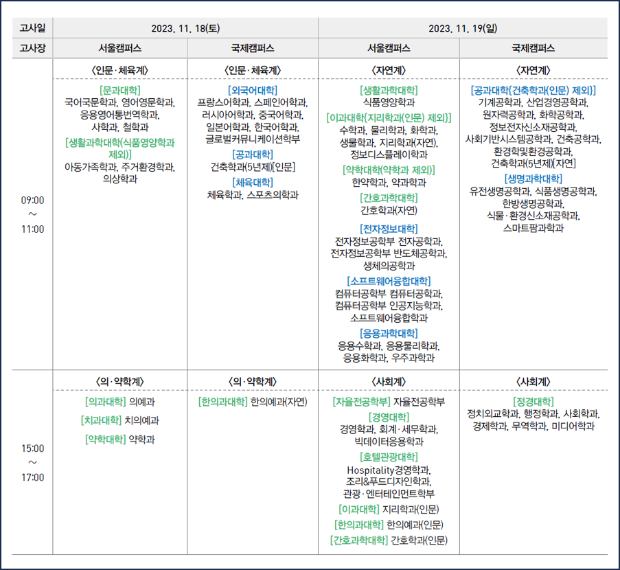 · 논술고사 장소는 지원한 모집단위가 속한 캠퍼스와 관계없이 고사장소를 서울 또는 국제캠퍼스 중 한 곳으로 배정함.