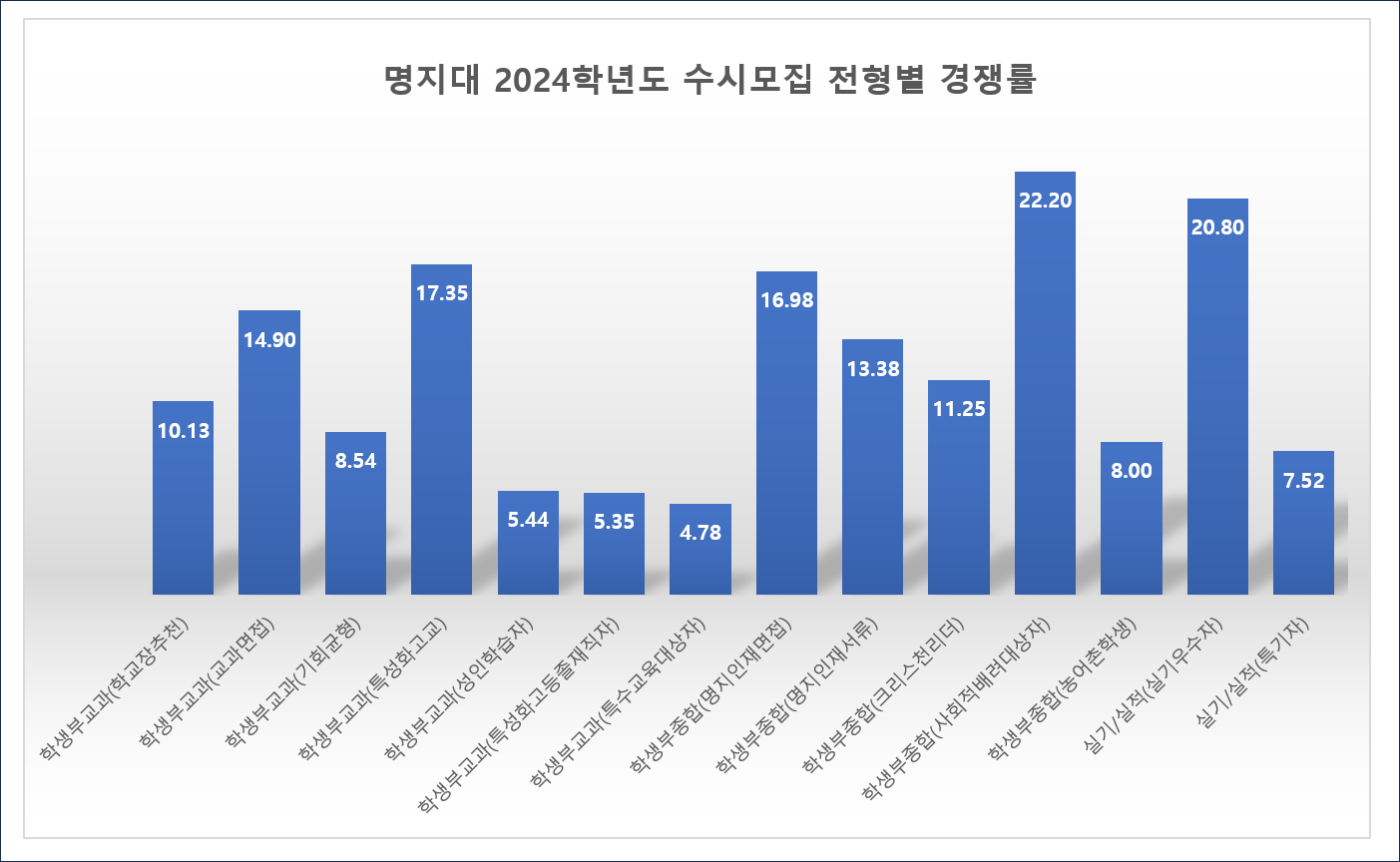 2024학년도 명지대 수시모집 각 전형 모집단위별 최종 경쟁률은 입학처 홈페이지에서 확인하시기 바랍니다.