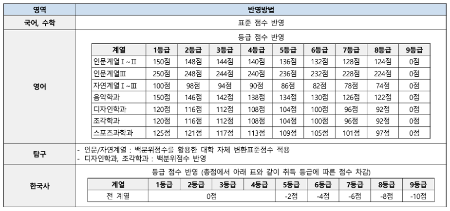 수능 반영방법