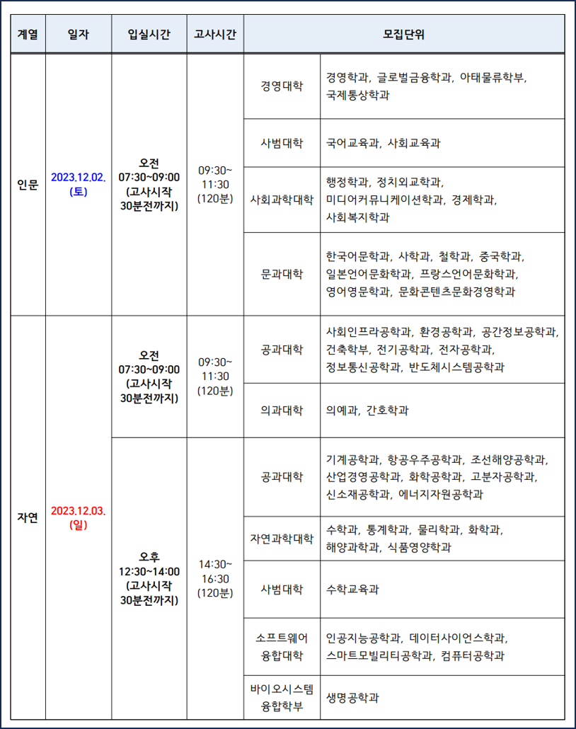 · 인문계열 : 2023. 12. 02 (토)