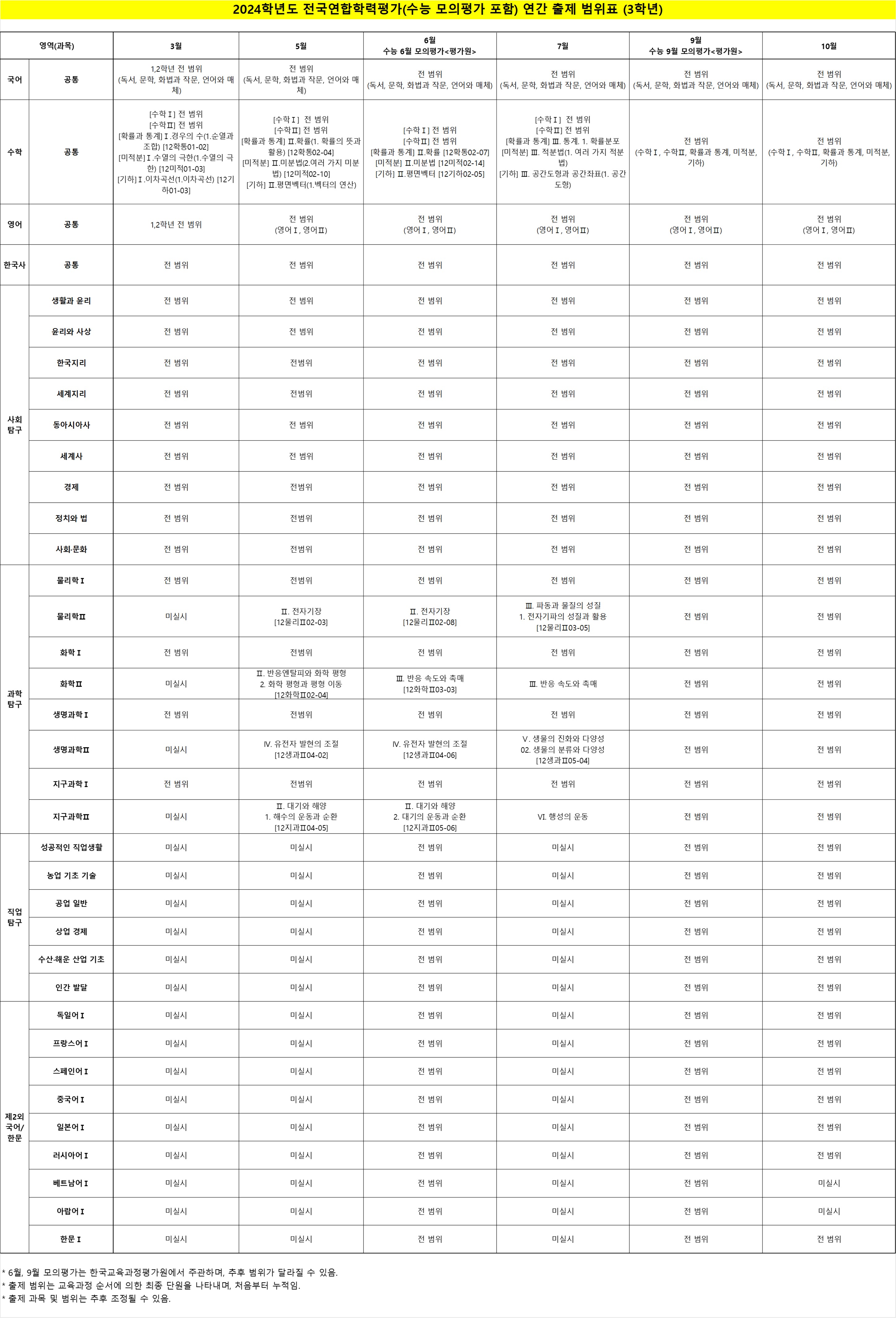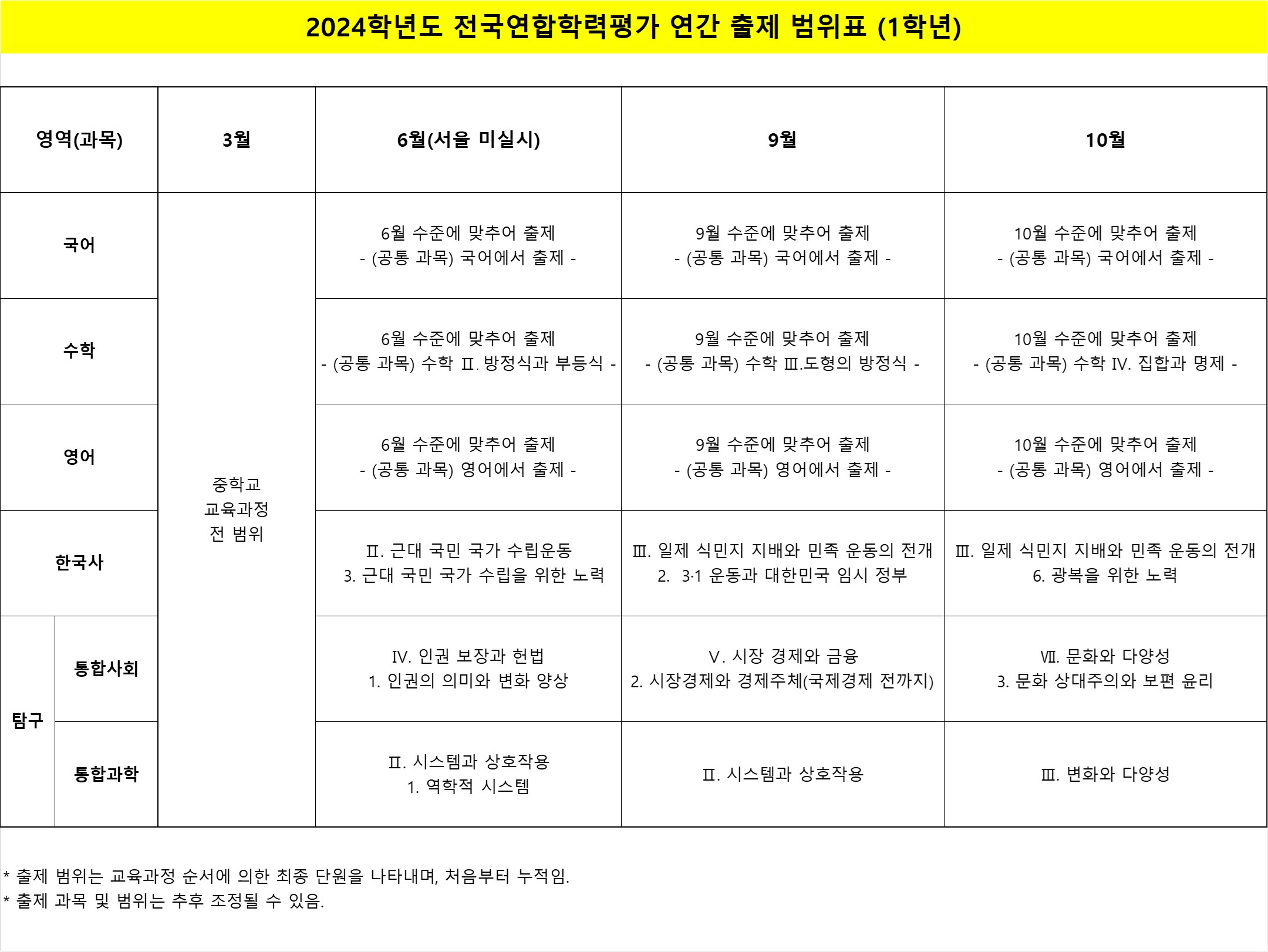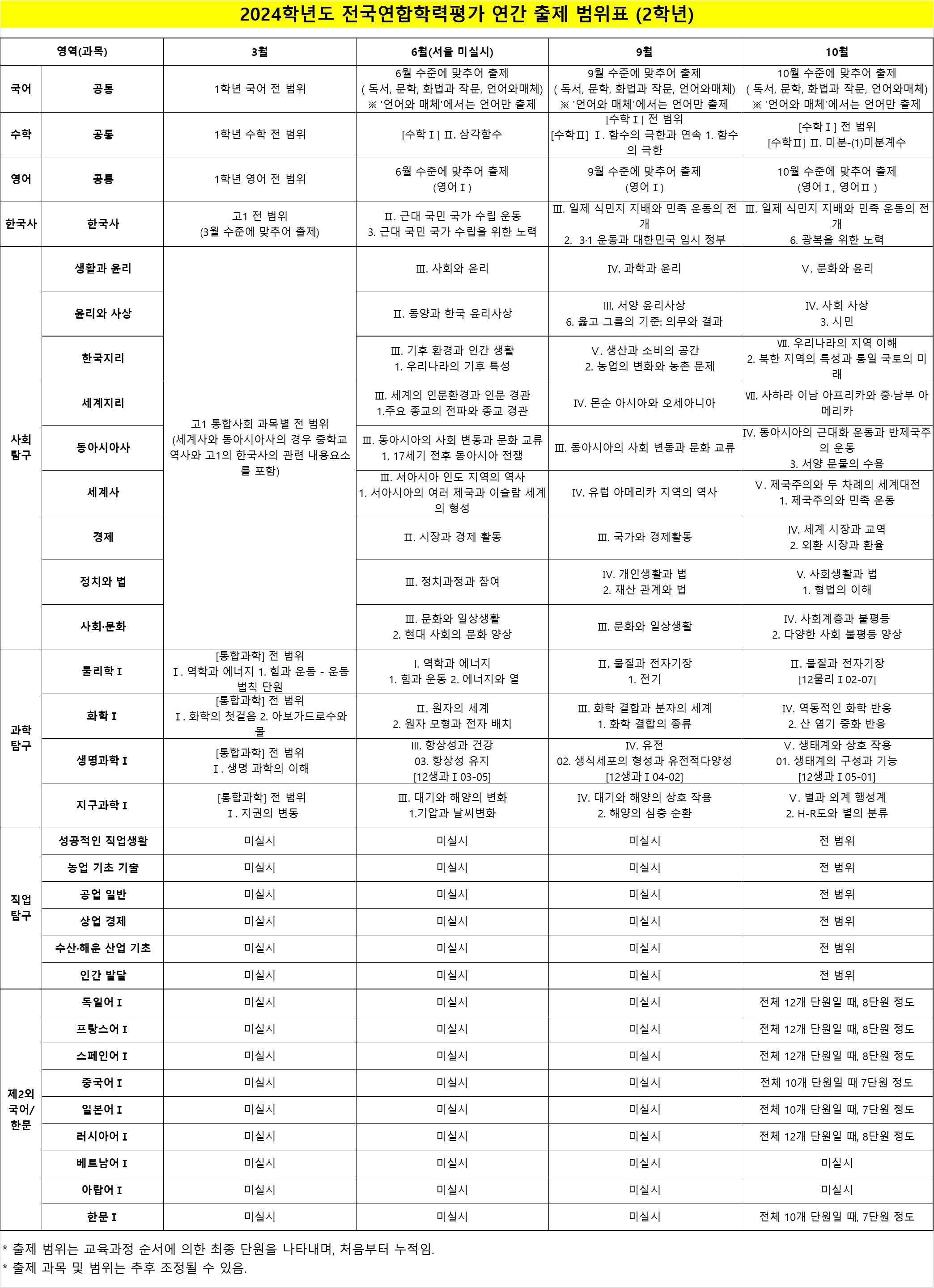 2024년 모의고사 일정과 연간 출제 범위에 대해 알아 보겠습니다.