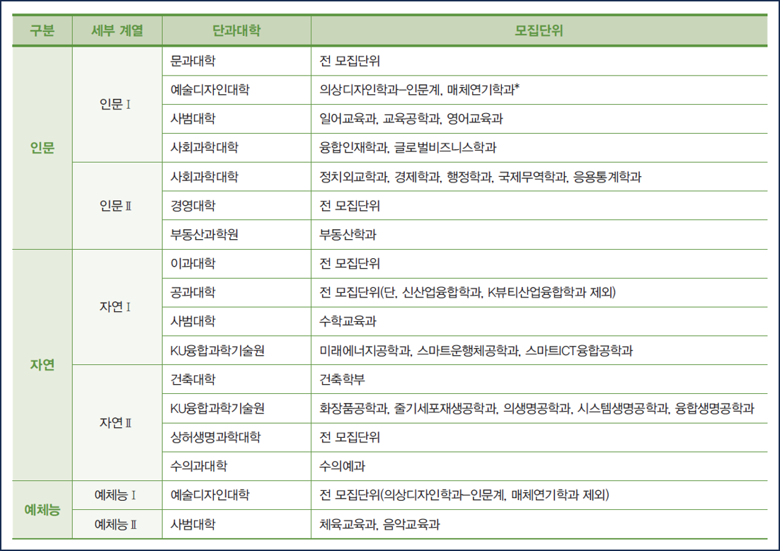1-1. 세부계열별 모집단위