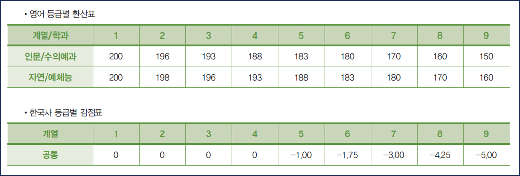 3-3. 영어 및 한국사 등급별 환산점수