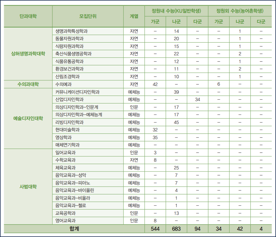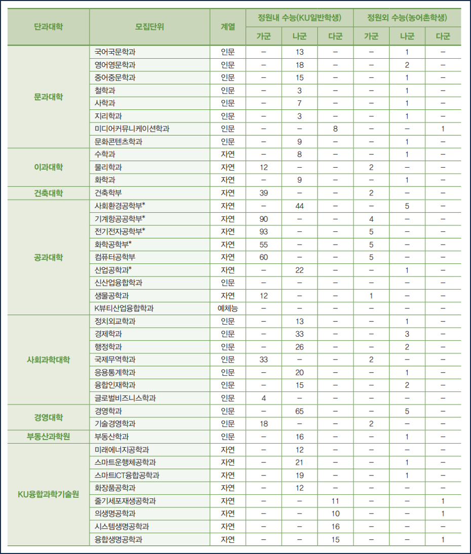 건국대 정시를 지원하는 수험생들은 입학처 홈페이지에서 세부사항을 반드시 확인하시기 바랍니다.