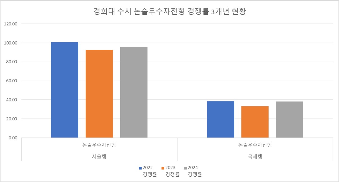 · 논술전형은 서울캠은 95~100:1 사이에서, 국제캠은 약35~40:1의 경쟁률을 계속 나타냈습니다.