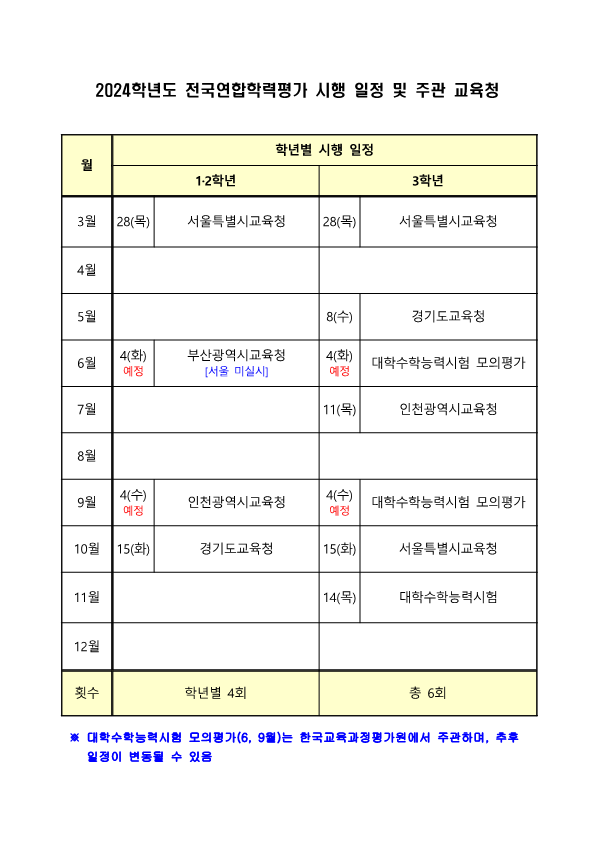 2024학년도 전국연합학력평가 학년별 시행 일정에 대해 알아 보겠습니다.