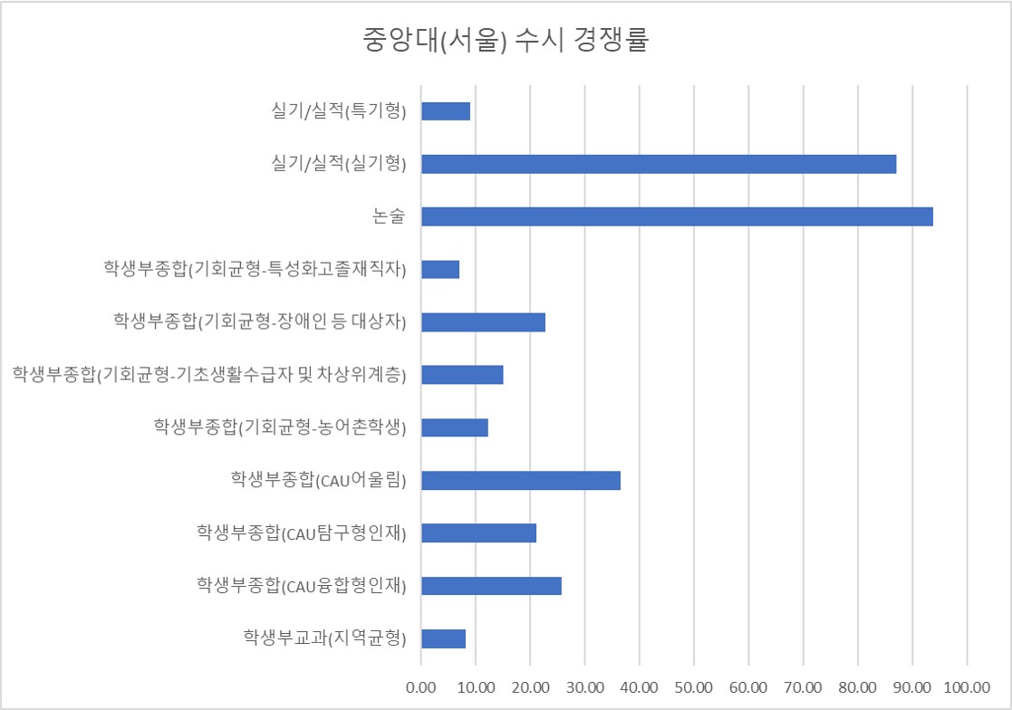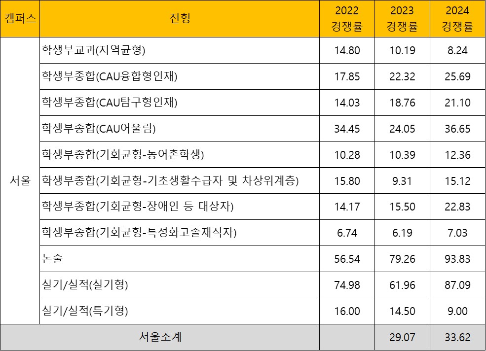 2024학년도 중앙대(서울캠퍼스) 수시 전형별 경쟁률