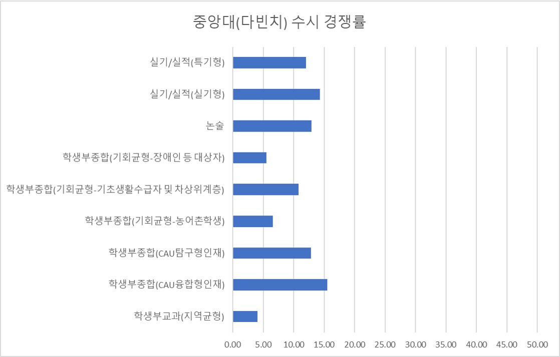 2024학년도 중앙대(다빈치캠퍼스) 수시 전형별 경쟁률