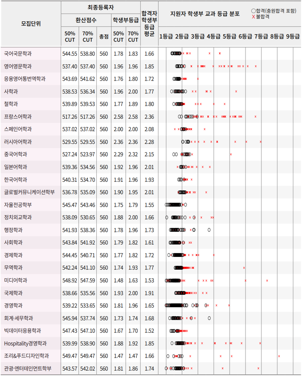 · 수능최저학력 기준을 맞춘다면 행정학과, 경영학과, 회계세무학과와 같이 3등급대에서도 합격자가 나올 수 있습니다.