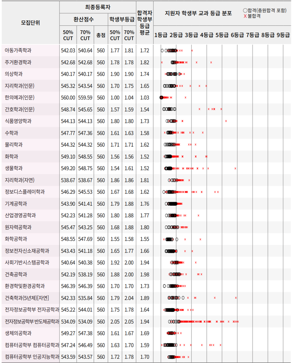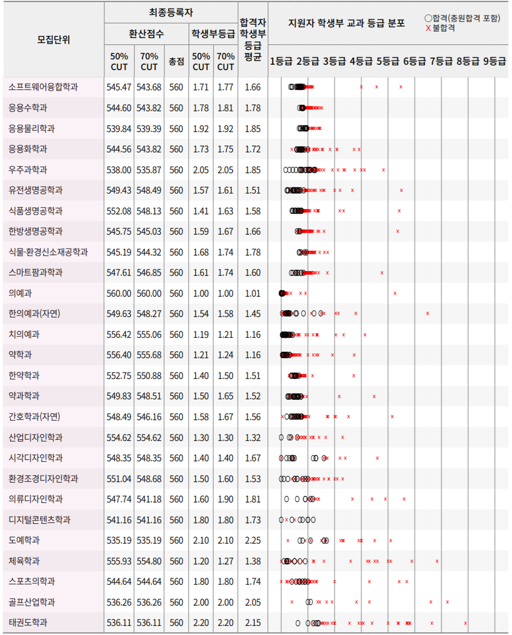 · 한의예과(자연)과 같이 수능최저학력 기준이 높을 경우 2등급대에서도 합격자가 나왔습니다.