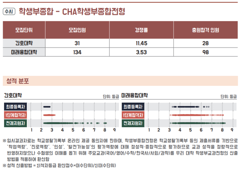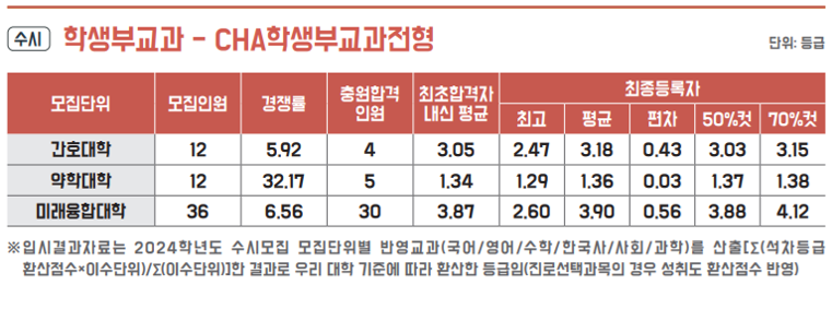 3. 학생부종합 (CHA학생부종합전형) 입결