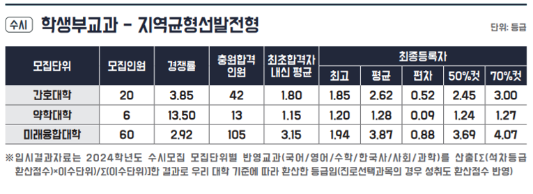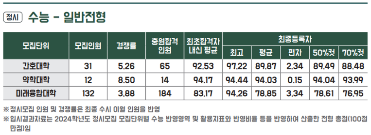 · 미래융합대학 : 합격선 3등급 중반대 ~ 5등급 초반대