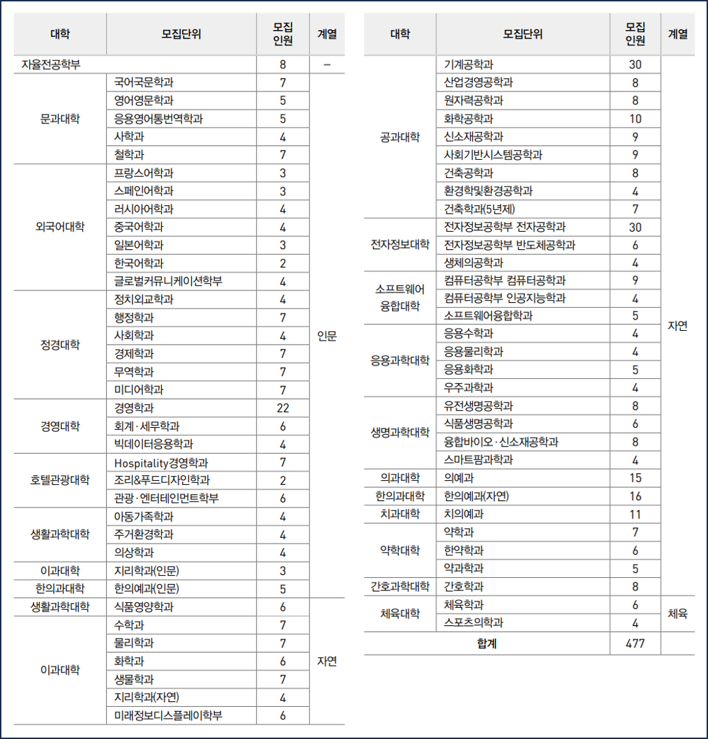 | 2026 경희대 서울캠퍼스 수시 수능최저 알아보기 (0) | 2025.02.07 |