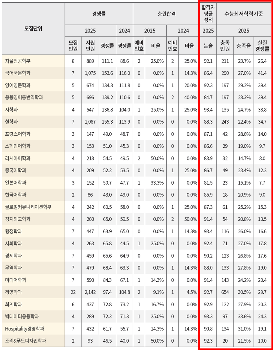 2025학년도 경희대 수시 논술 입결 알아보기