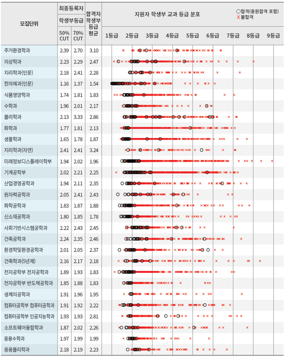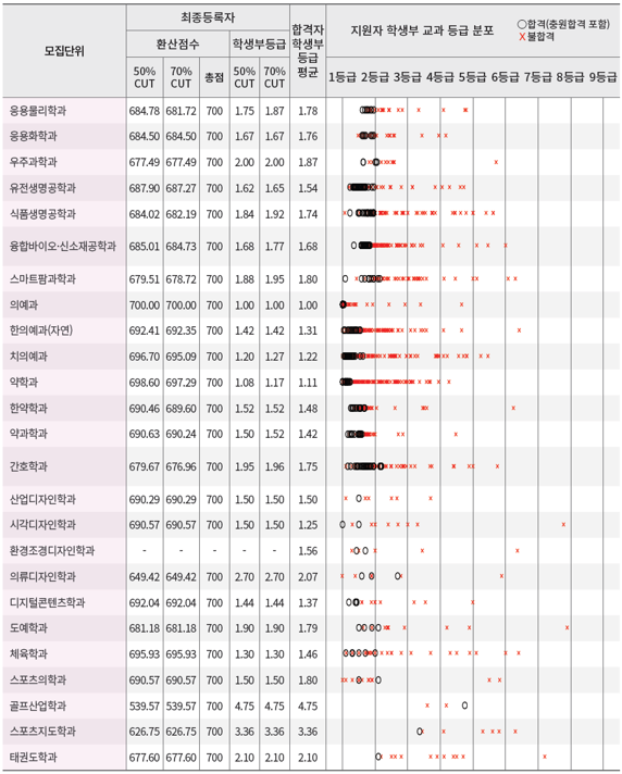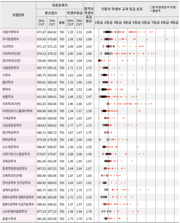 - 자연계열 : 국어, 영어, 수학, 과학 전 과목 평균 등급