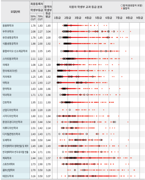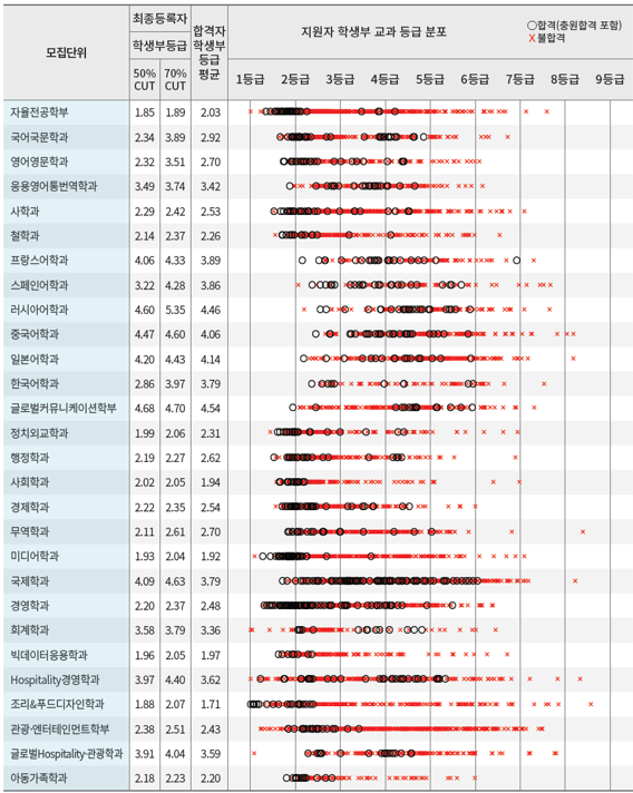 - 자율/자유전공학부 : 국어, 영어, 수학, 사회, 과학, 한국사 전 과목 평균 등급