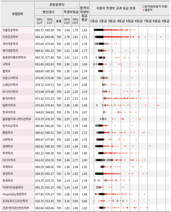 - 자율/자유전공학부 : 국어, 영어, 수학, 사회, 과학, 한국사 전 과목 평균 등급
