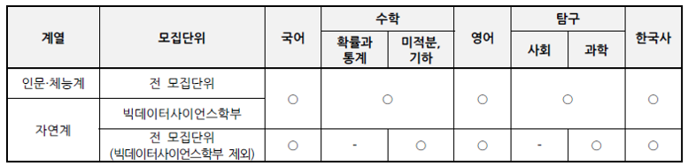 · 모집단위별로 지정한 수능영역에 반드시 응시해야 합니다.