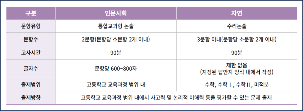 · 논술고사 일정 : 2024. 11. 23 (토)