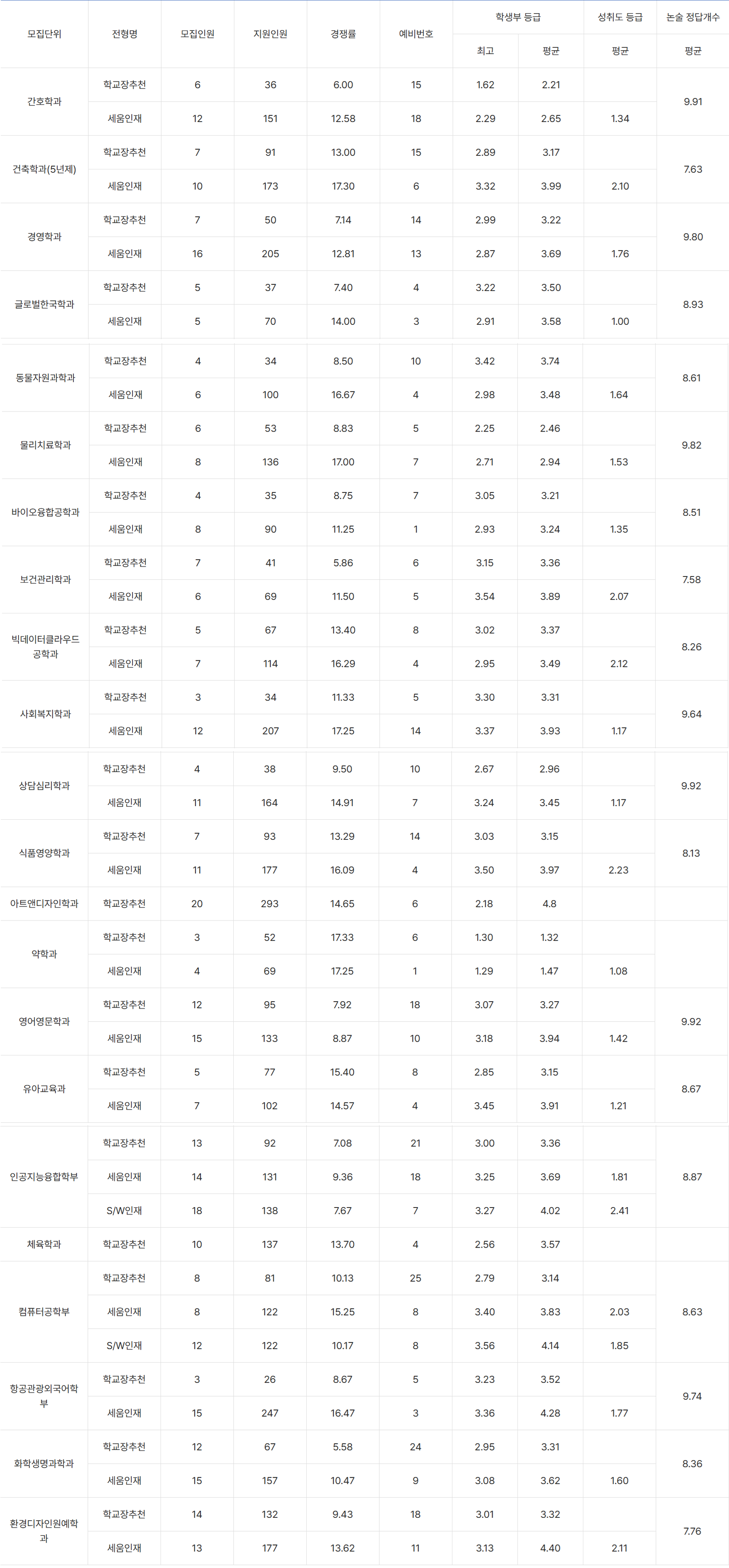 - 일반학과 : 국,영,수,탐(1과목) 중 2개 영역 합 7등급 이내