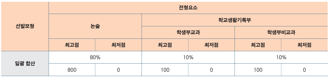 · 논술 80% + 학생부교과 10% + 학생부 비교과(출결) 10%