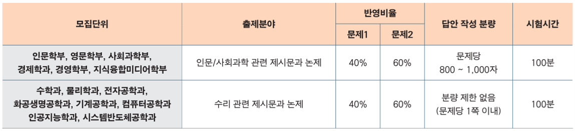 · 논술 80% + 학생부교과 10% + 학생부 비교과(출결) 10%