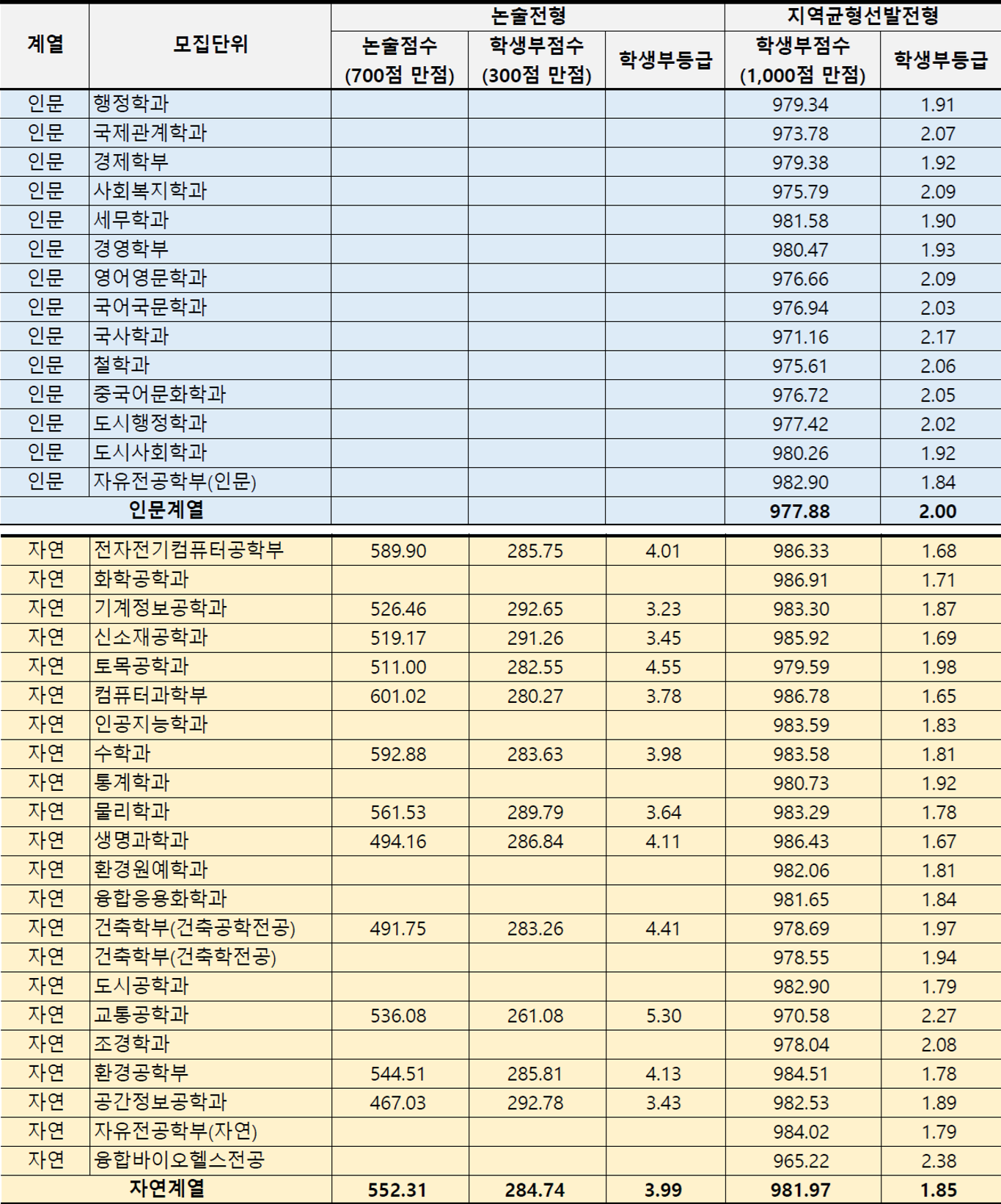 1. 학생부교과 & 논술전형