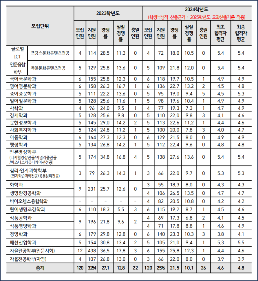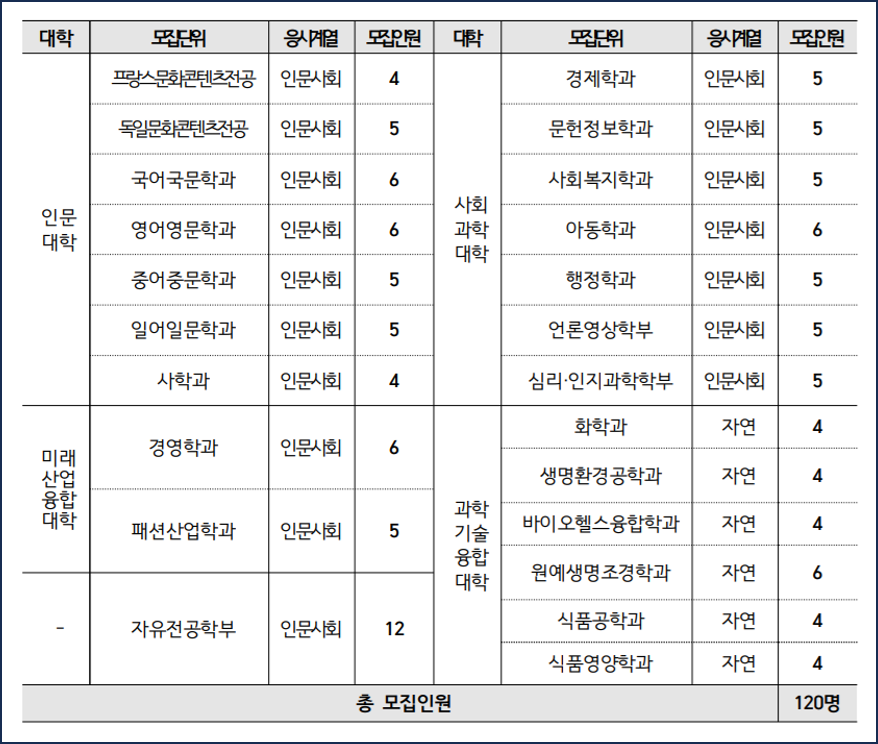 · 수능최저학력기준 : 국어, 영어, 수학 3개 영역 중 1개 영역 이상 3등급 이내