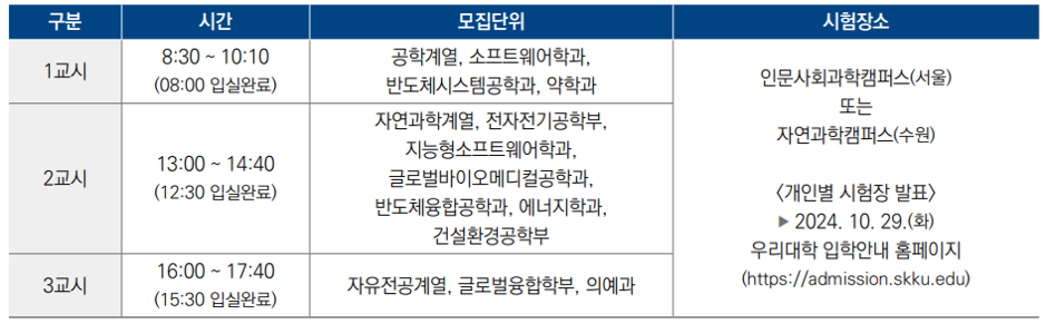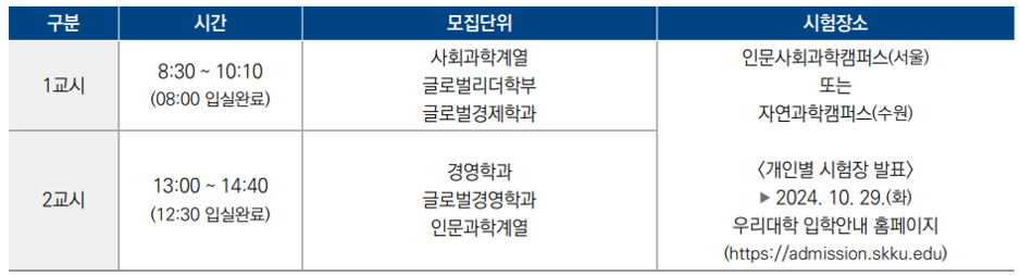 성균관대 논술전형에 지원하고자 하는 수험생들은 성균관대 입학처 홈페이지에서 세부사항을 반드시 확인하시기 바랍니다.
