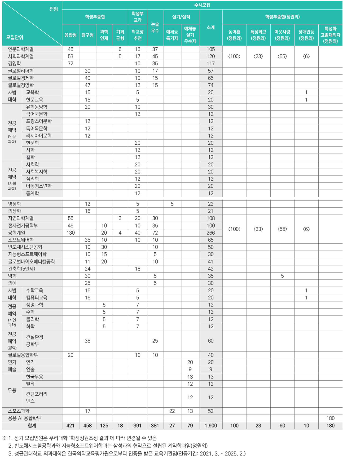 2025학년도 성균관대 입학전형 시행계획 중 수시전형에 대해 알아보겠습니다.