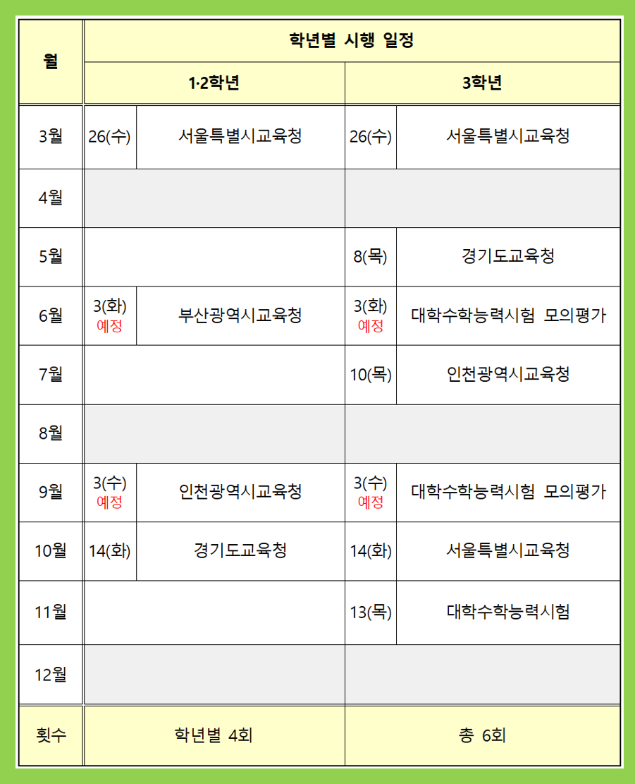 2025년 전국연합학력평가(모의고사) 시행 일정과 주관교육청에 대해 알아 보겠습니다.