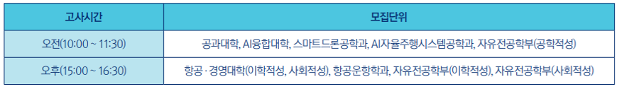2025학년도 한국항공대 논술전형 모집단위별 논술고사 시간 (출처 : 한국항공대 입학처)