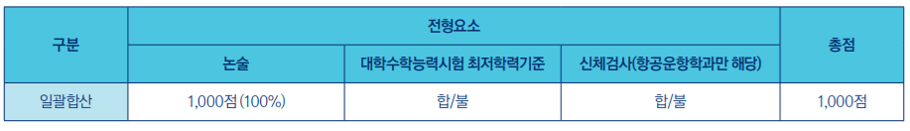 2025학년도 한국항공대 논술전형 전형요소 (출처 : 한국항공대 입학처)