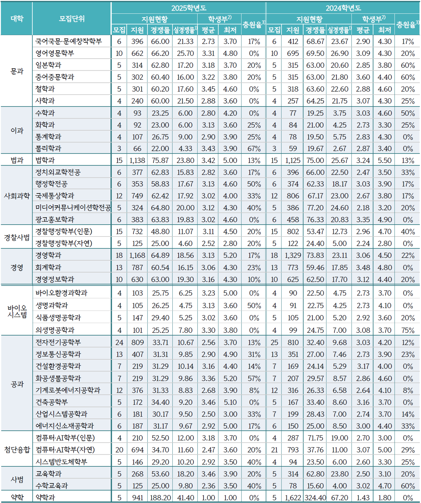 실경쟁률 : 논술고사 응시자 중 수능최저학력기준 충족자를 모집인원으로 나눈 실제 경쟁률