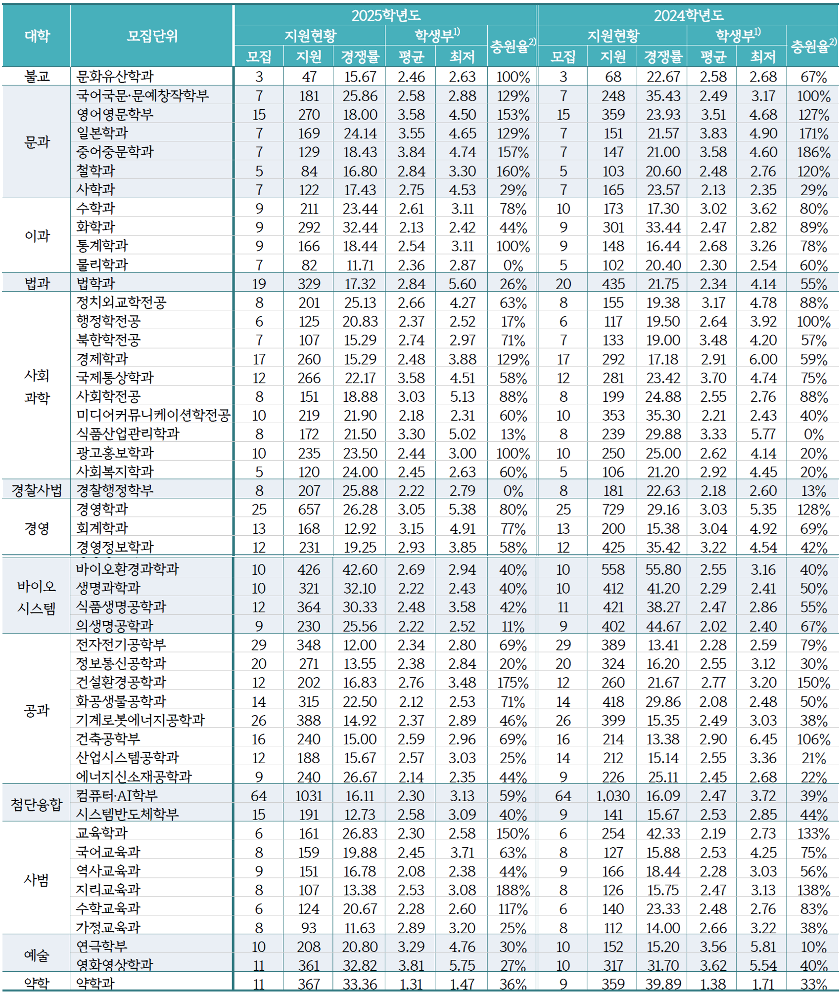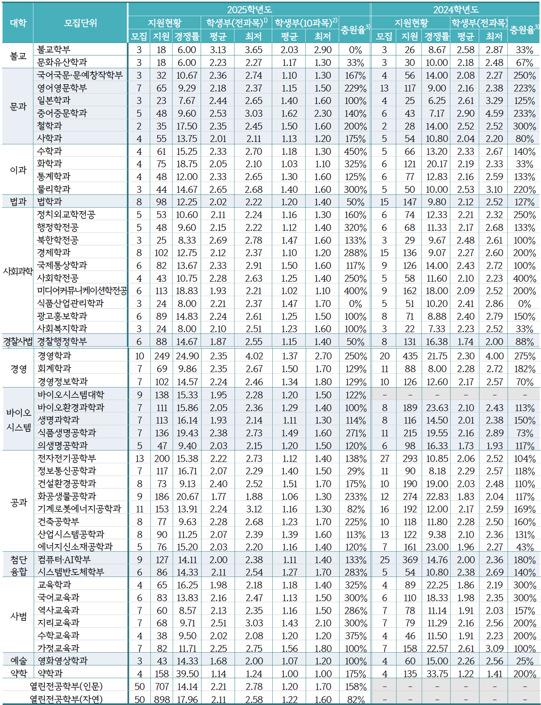 2025학년도 동국대 수시 학생부교과 학생부종합 입시결과에 대해 알아 보겠습니다.