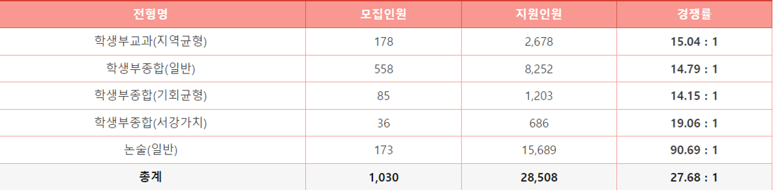 2025학년도 서강대 수시 모든 전형별, 모집단위별 경쟁률은 아래 바로가기를 통해 확인하시기 바랍니다.