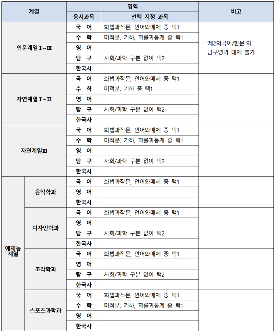 * 인문계열 사회탐구 2과목 모두 선택 시 3% 가산점 부여