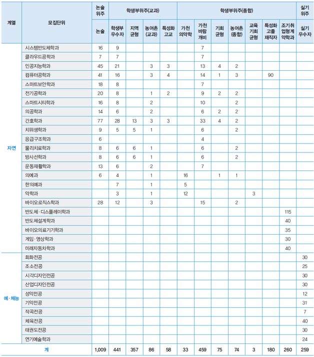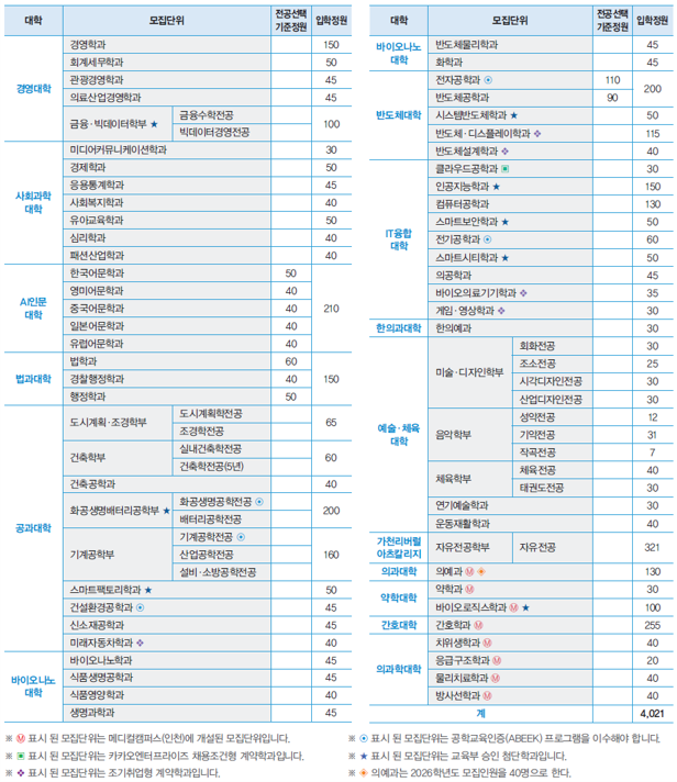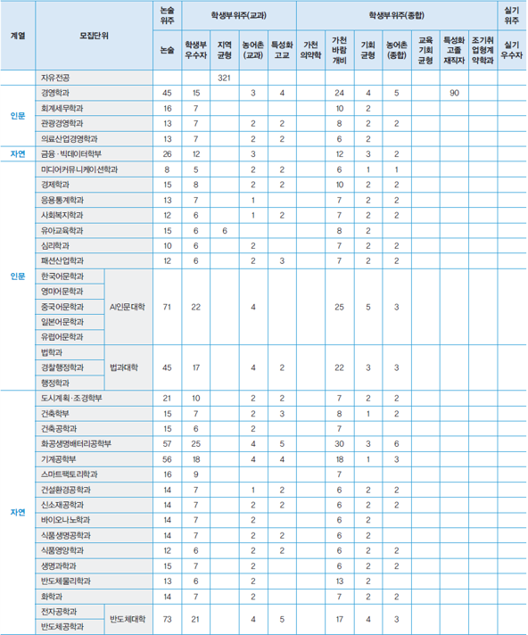 3. 모집단위별 입학정원