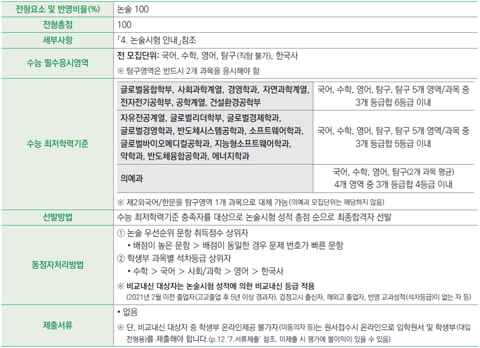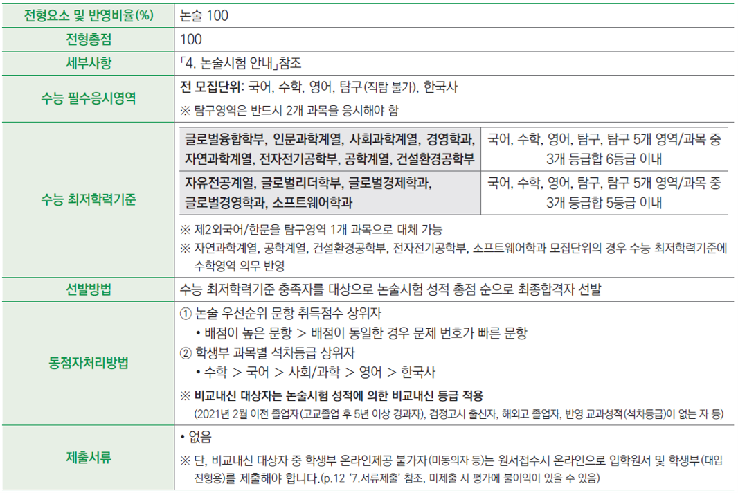 성균관대 수시 논술전형에 지원하고자 하는 수험생들은 성균관대 입학처 홈페이지에서 세부사항을 반드시 확인하시기 바랍니다.