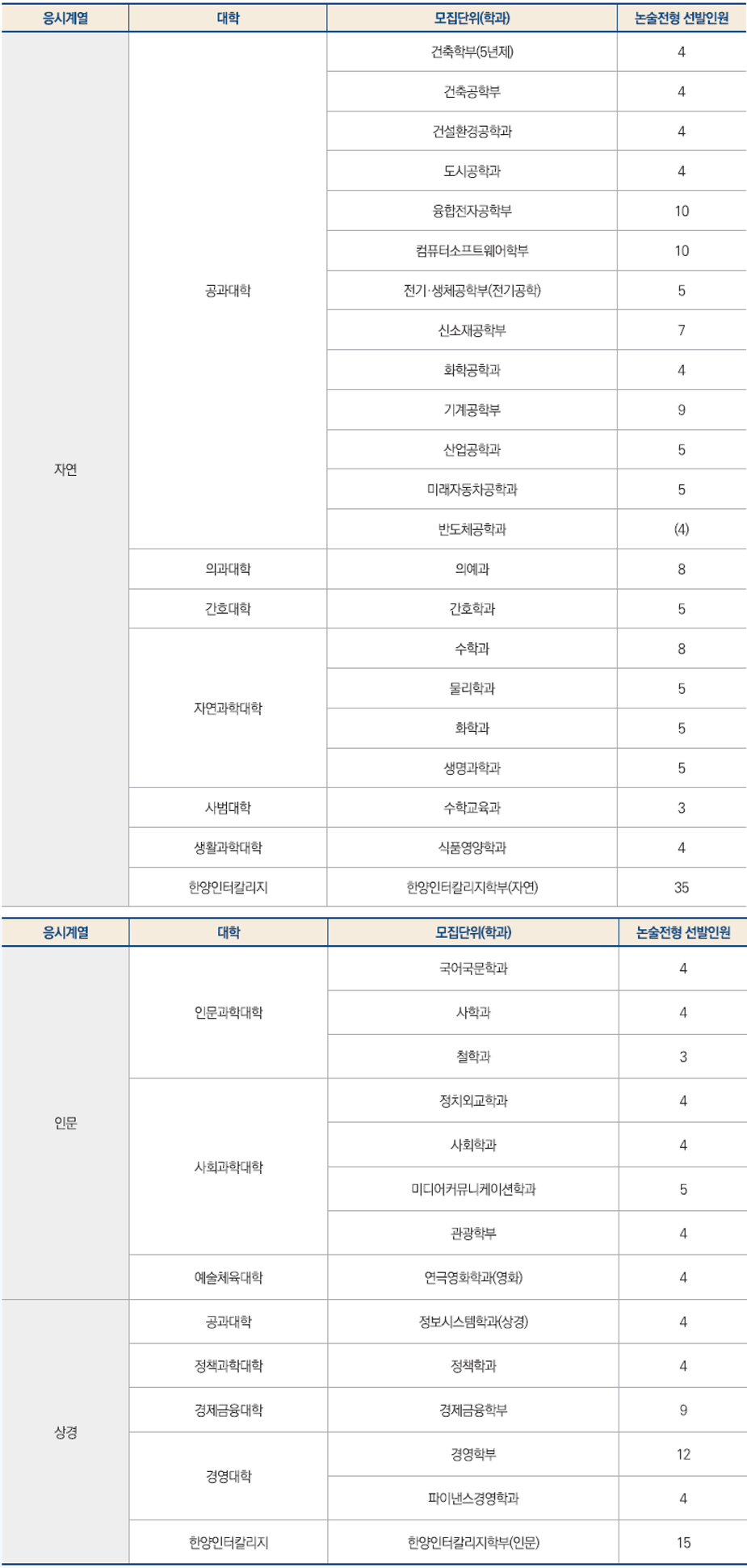 한양대 논술전형에 응시하고자 하는 수험생들은 입학처 홈페이지에서 세부사항을 반드시 확인하시기 바랍니다.