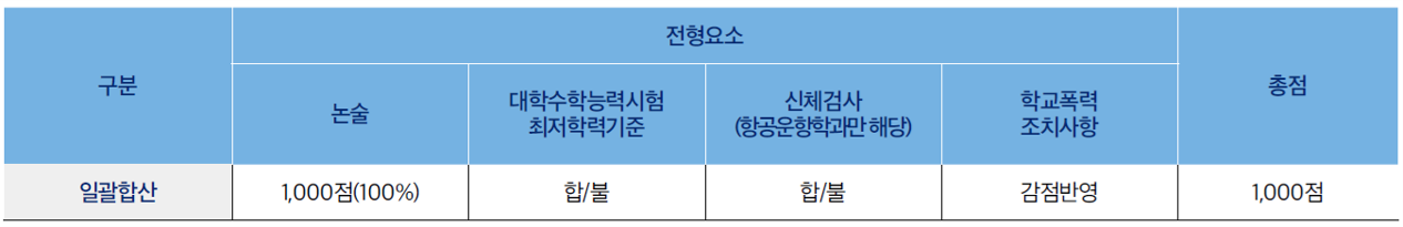 - 신체검사 : 항공운항학과만 해당되며 합격/불합격 판정